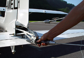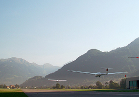 | Am 12.8.2003 wurde in Mollis mit der Ecolight-Schlepperprobung begonnen. Unter der Aufsicht von Vertretern des BAZL und des CCEA startete Walter Elmer mit seinem Remos G3-Mirage (D-MELH) auf dem Flugplatz Mollis um exakt 08.48 Uhr zu seinem ersten Schleppflug mit der ASK 21 der Segelfluggruppe Mollis, pilotiert vom erfahrenen Segelfluglehrer Urs Elmer. Mit Steigwertenvon 2-3 m/s funktionierte der Schlepp auf Anhieb problemlos. Nach ein paar einsitzigen "Angewöhnungs-Schlepps" folgten mit der ASK 21 auch doppelsitzige Flüge. Bei heissen 30 Grad Aussentemperatur schaffte der 100 PS starke Rotax 912 mit Verstellpropeller problemlos ein Schleppgewicht bis zu 650 kg. Geschleppt wurde zum Teil bis 2700 Meter über Meer Ausklinkhöhe, wobei selbst auf dieser Höhe doppelsitzig immer noch Steigen möglich gewesen wäre. Geschleppt wurde mit den üblichen Steiggeschwindigkeiten von 110-120 km/h, wobei Geschwindigkeiten bis hinunter auf 70 km/h möglich sind. Eindrücklich war insbesondere die markant geringe Geräuschentwicklung. Die Schleppmaschine war nämlich am Boden kaum zu hören! Folgende Landetechnik wurde praktiziert: Im Endanflug wurde das Seil jeweils in Bodennähe abgeworfen und der Remos G3-Mirage unmittelbar danach gelandet. |