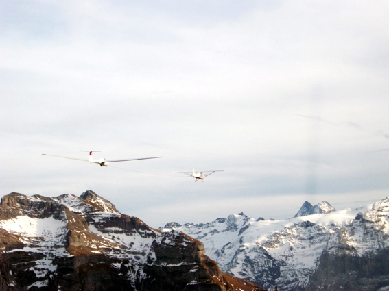 Schleppzug im Steigflug über der Bannalp ...mehr Ikarus C42